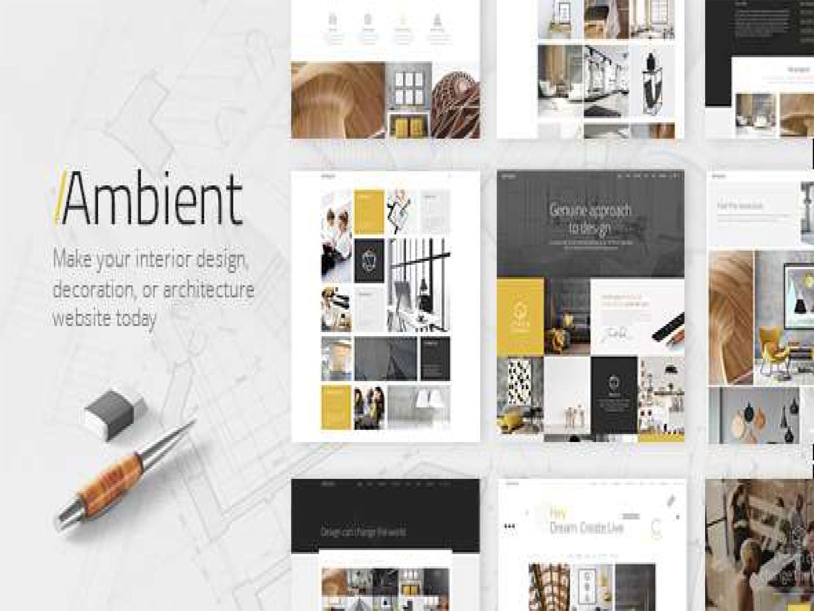 Ambient V1.3 İç Tasarım İçin Çağdaş Bir Tema, Kullanımı kolay – kodlama bilgisi gerekmez; Güçlü Yönetici Paneli; 12 Ana sayfa örnekleri; İç sayfa şablonları; Tek Tıkla demo sitesini içe aktarın; Duyarlı ve Retina Hazır; Kapsamlı tipografi seçenekleri; Portföy Listesi kısa kodu; Çeşitli Portföy Listesi düzenleri; Portföy Listesi Duvar düzeni; Portföy Listesi Galeri düzeni; Çeşitli Portföy Hover Türleri; Çeşitli Portföy Tekli düzenler.
